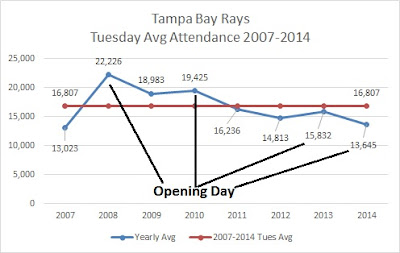This chart depicts the Rays average attendance on "First Fridays". First Fridays take place only a few blocks from Tropicana Field. According its website,